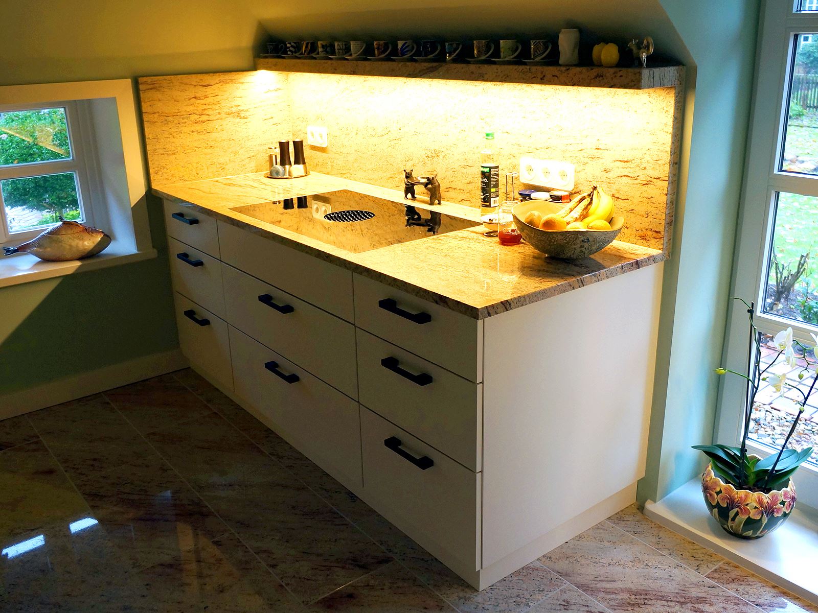 Darum bekommen Sie bei uns eine maßgeschneiderte Küche, die Ihrem Raumkonzept entspricht. Unter- und Hängeschränke, Kücheninsel, Einbau-Geräte wie Herd, Backofen und Kühlschrank, Dunstabzug, Arbeitsplatten, Sitzbereich - wir sorgen dafür, dass Ihre Einbauküche Ihre Bedürfnisse erfüllt.